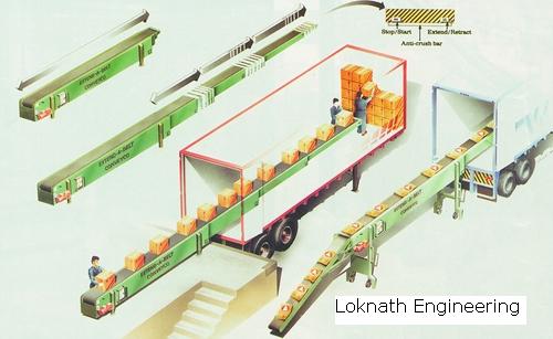 Loknath Precision-Telescopic Belt Conveyors meeting the increased demands of today's warehouse and distribution centers. Loknath Telescopic belt conveyor satisfy all criteria provide cost effective and speedy vehicles loading and unloading trucks, trailers, containers and vans etc., Warehouse storage, packaging area, bags or cardboard storage etc., Loknath will provide selection, design and manufacturing of Telescopic Belt Conveyor as per the customer requirement.